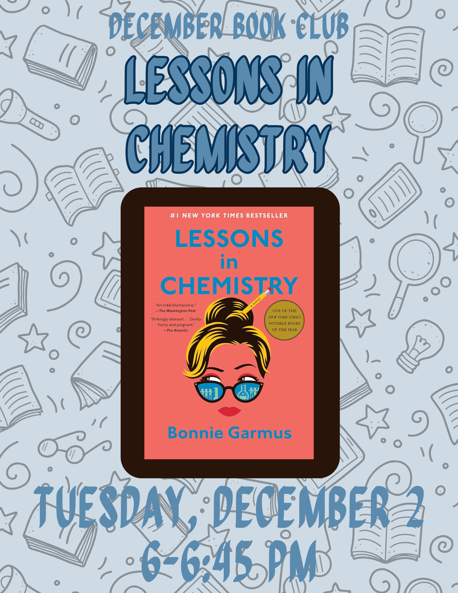 Book Club Meeting where a selected book will be discussed. This month’s book is “Lessons in Chemistry” by Bonnie Garmus. Members can also pick up next month’s book, “Ask Again, Yes” by Mary Beth Keane. Contact the library for details regarding joining the book club.