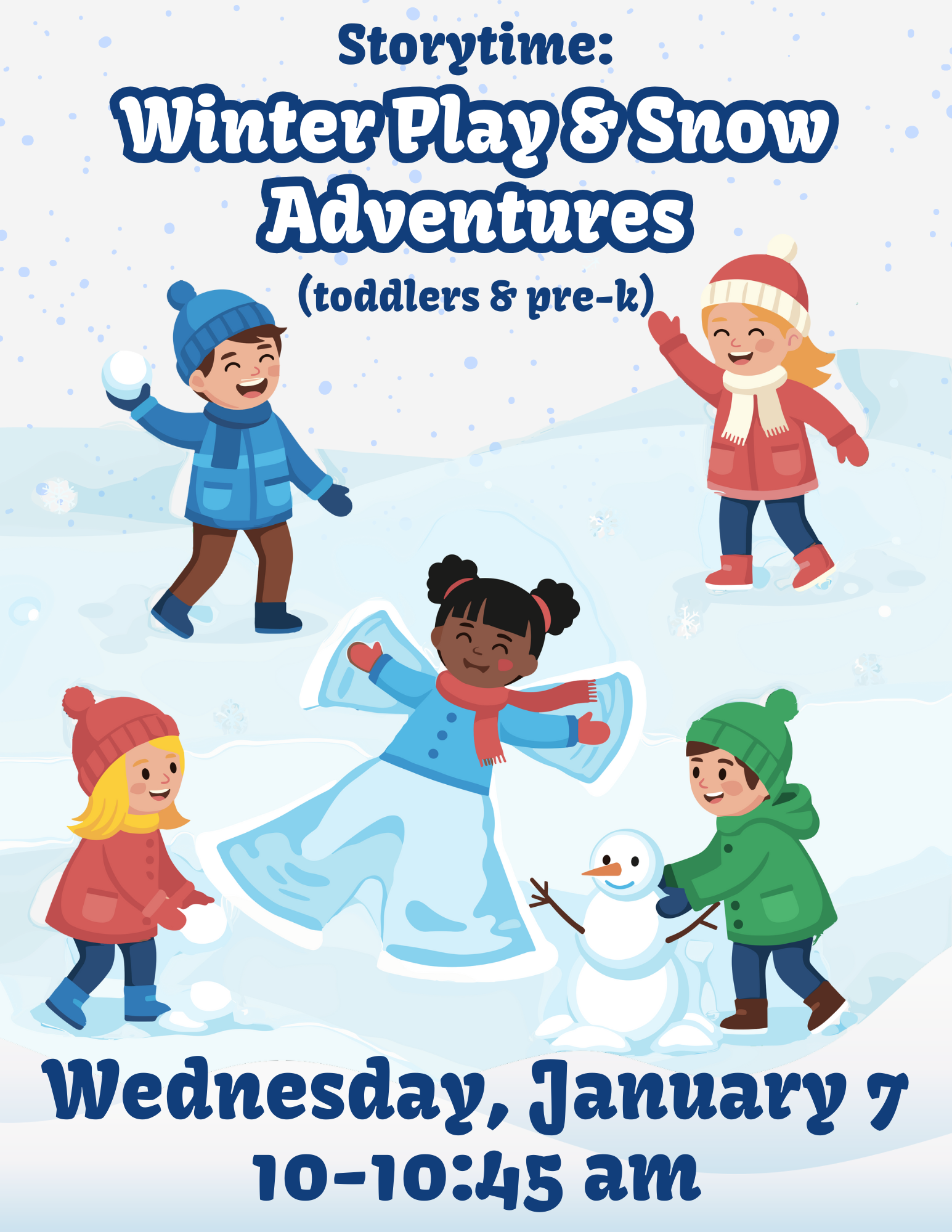 Early Literacy Storytime program for toddlers and preschoolers. This session's theme is snowmen and will include fun stories, activities, and a craft!