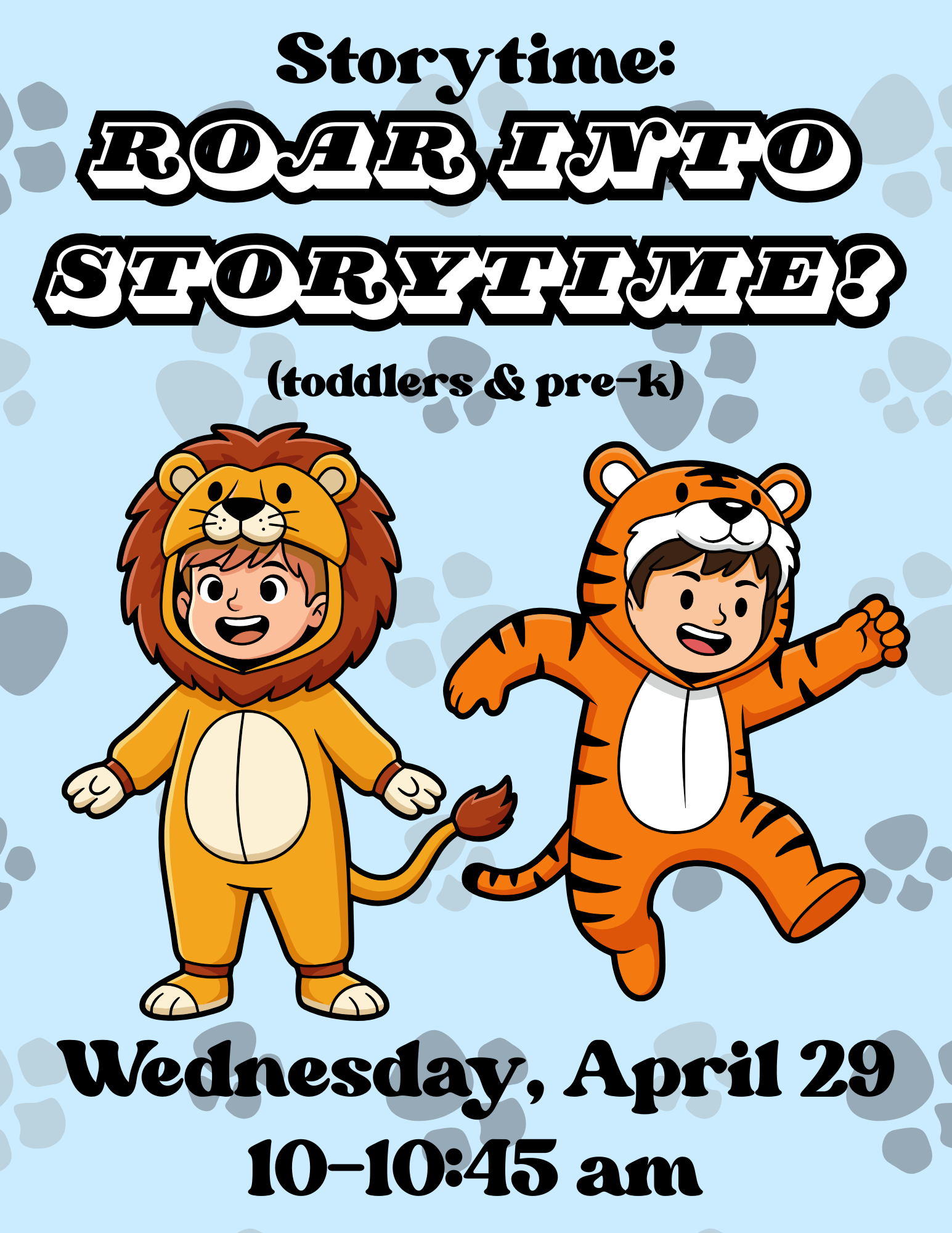 Research shows that children benefit from active participation in early learning activities. Bring your children to this event for stories and craft activities. This week's theme is Roar Into Storytime!