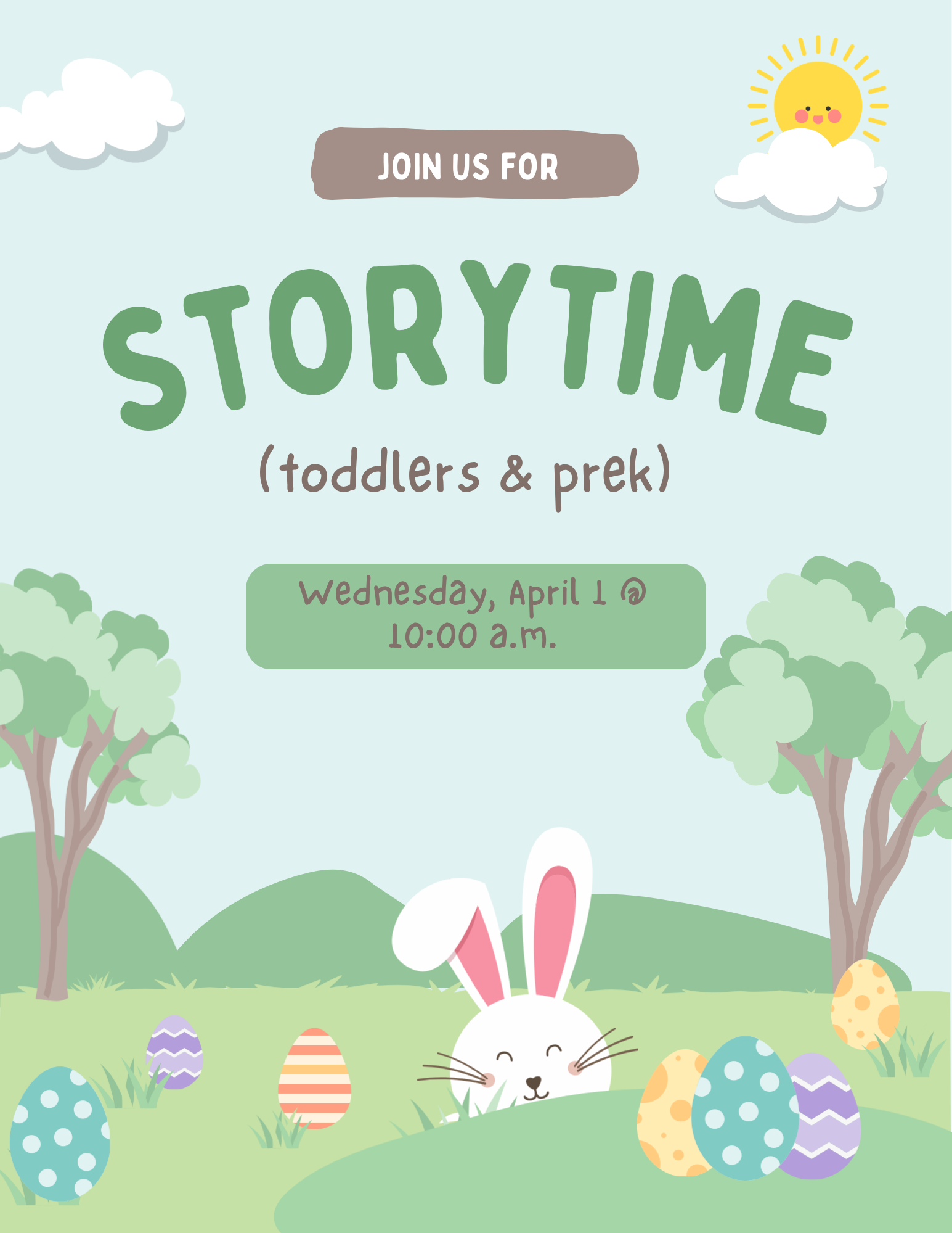 Early Literacy Storytime program for toddlers and preschoolers. This session's theme is spring and will include fun stories, activities, and a craft!