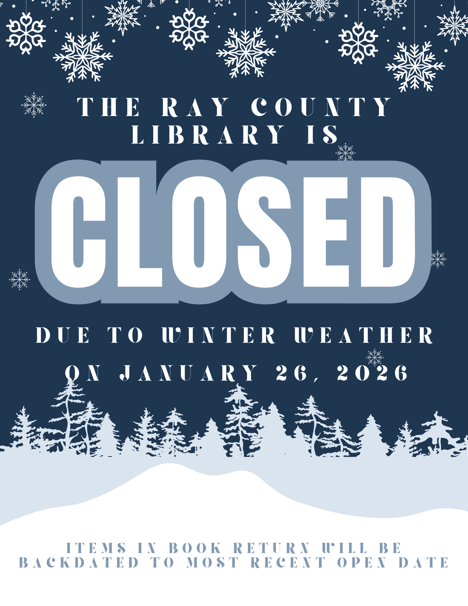 The Library will be closed on Monday, January 26, 2026, due to inclement weather. Post navigation Library Closed due to inclement weather